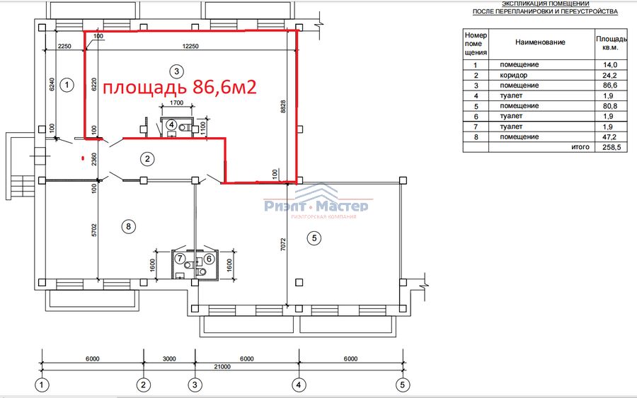 | Площадь помещений: | 86,8 кв.м |